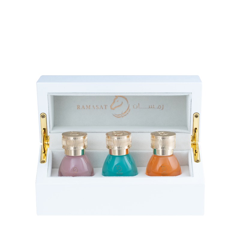 A curated trio of signature aromatic oils, elegantly presented in a diamond white box. Perfect for gifting or daily rituals of refined self-expression.